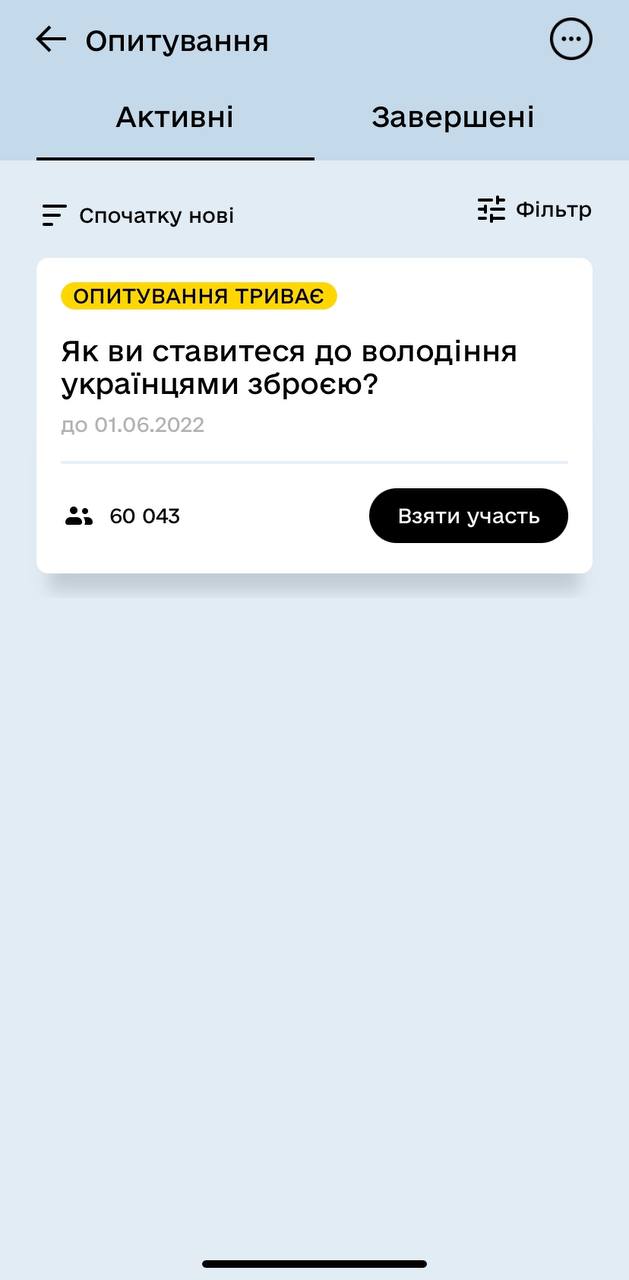 Станом на 16:25, в опитуванні взяли участь 60 043 людей.