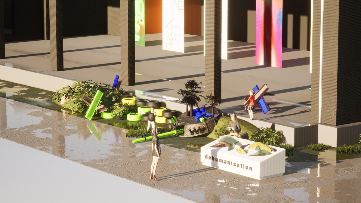 У Києві перед будівлею «Квіти України» на вулиці Січових Стрільців, 49 відбудеться трансмедіальна дводенна поп-ап виставка, присвячена формам проживання війни. Виставка «дегуманізація / dehumanisation» триватиме третього та четвертого червня.