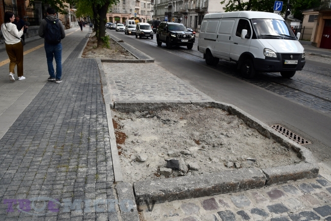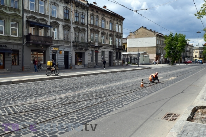 Асфальт найменш шумний і на ньому краще наносити розмітку, але для містян було важливо зберегти автентичну бруківку, тому виникла суперечка. Спочатку пропонувалось покласти бруківку між трамвайними рейками, щоб авто їхало по асфальту і не шуміло, але технологічно так зробити не вдалось, пояснює Шутюк.