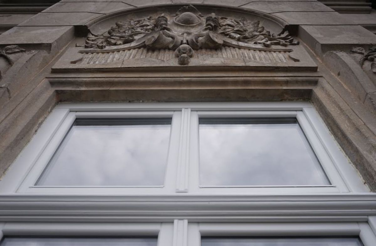 Три вікна та два балконні дерев’яні блоки подібні до інших автентичних вікон із цього будинку.