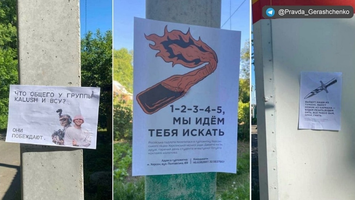 Партизани залишають на стінах Херсона проукраїнські плакати (фото)