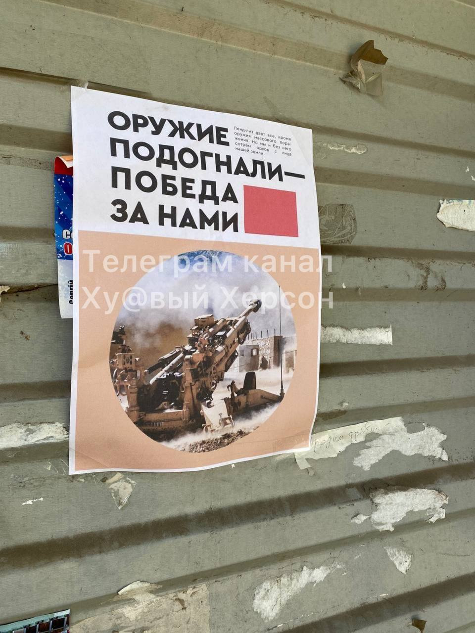 В окупованому росіянами Херсоні з’являються проукраїнські плакати. Місцеві партизани розклеюють листівки на маршрутах чергування патрулів окупантів, повідомляють херсонські Телеграм-канали.