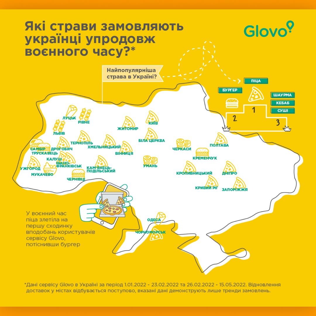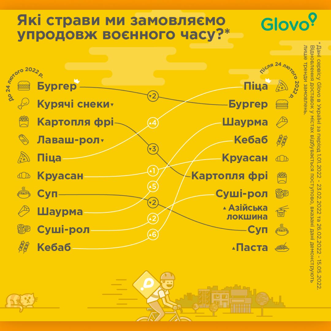 За даними сервісу Glovo, найпопулярнішою стравою для замовлень стала піца, яка потіснила бургер на друге місце.