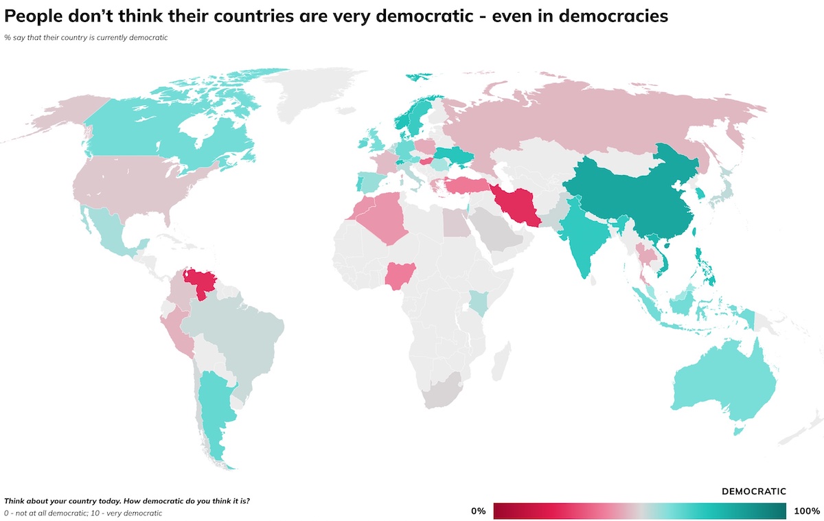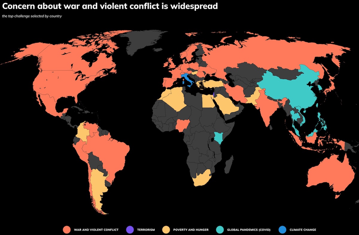У 2022 році жителі країн світу вважають війну найбільшою глобальною загрозою, згідно з оновленим Індексом сприйняття демократії.