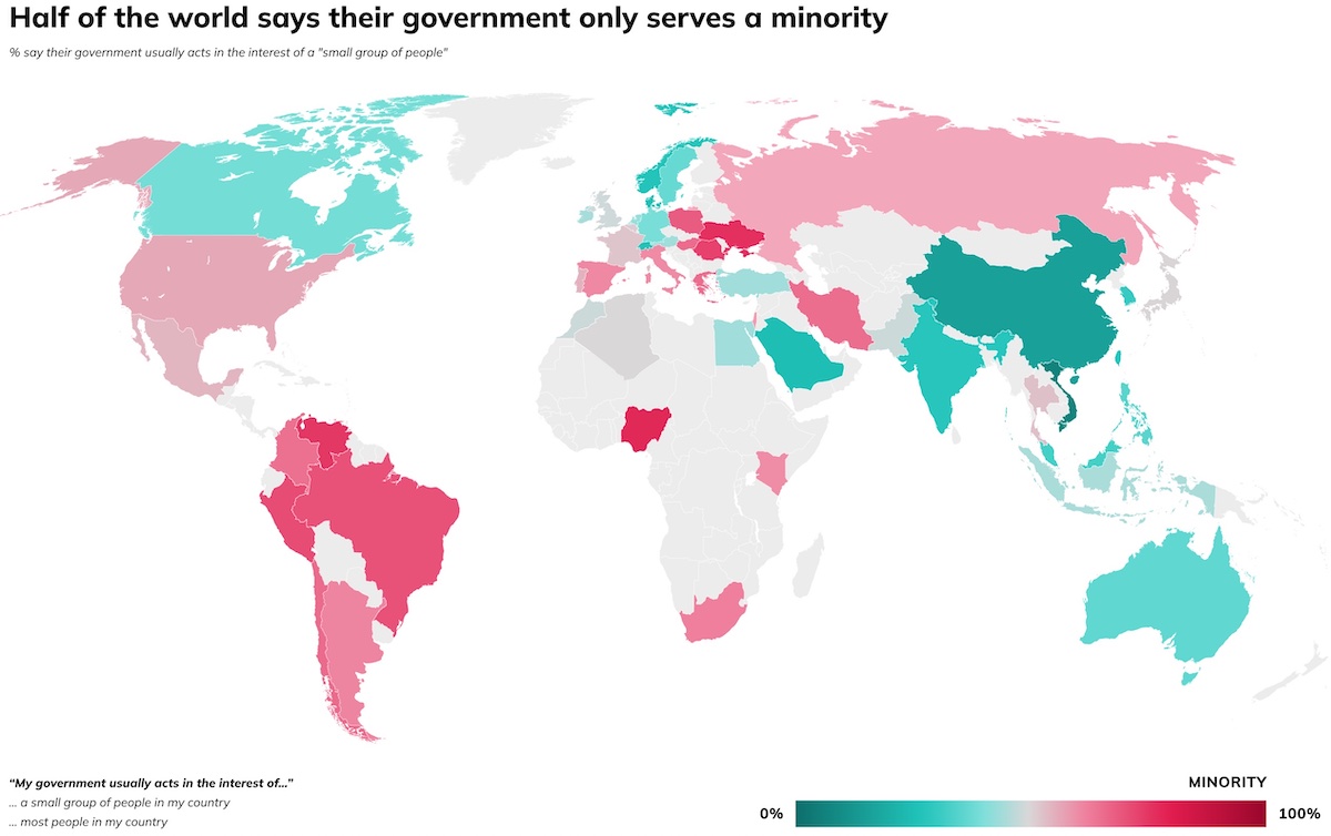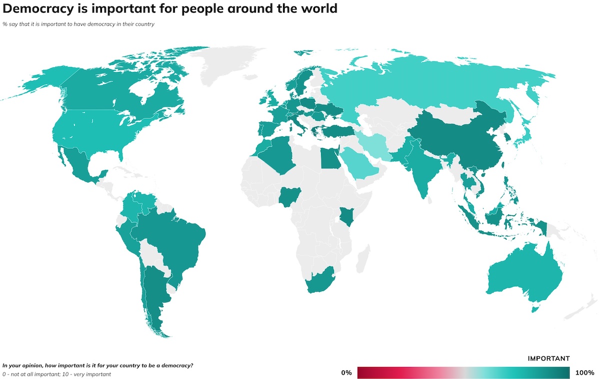 Більшість жителів світу вважають головною загрозою демократії у світі економічну нерівність. Далі йдуть бідність і голод, COVID та зміни клімату.