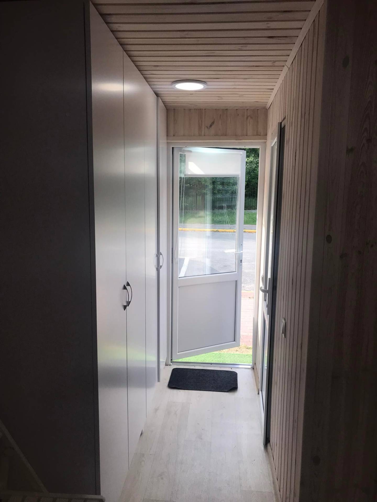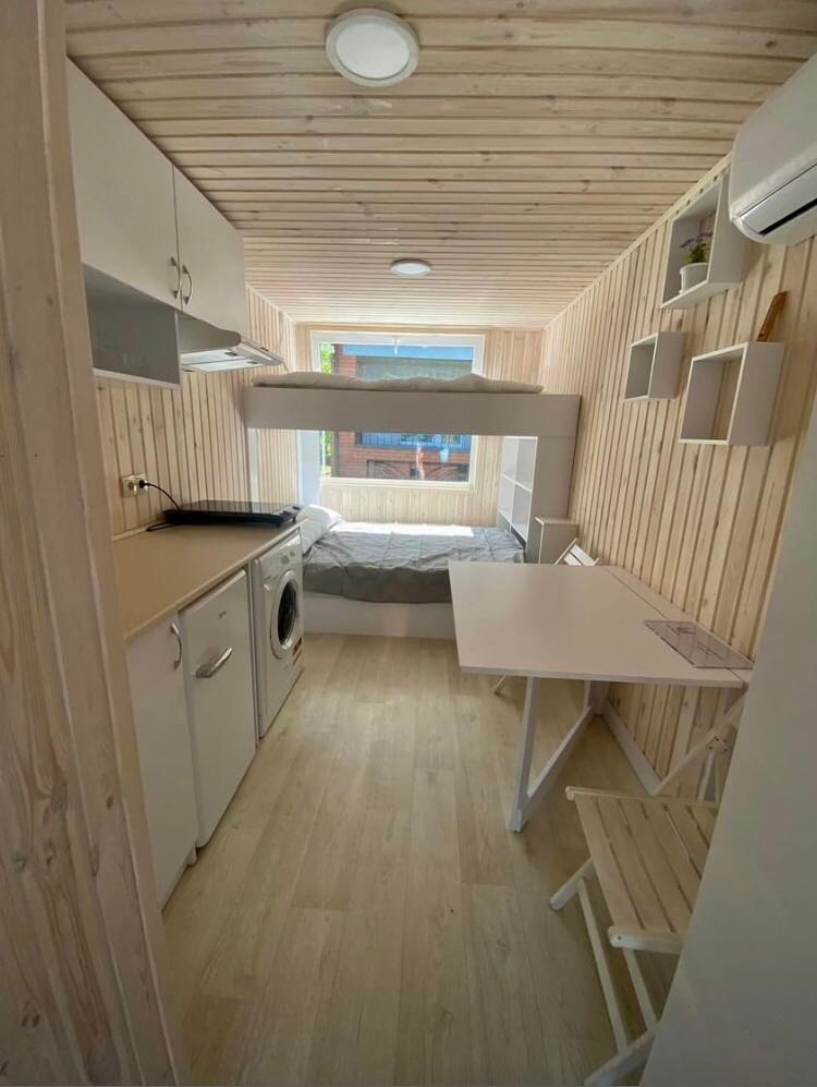 У будинках площею в 14 квадратних метрів можуть проживати до чотирьох осіб. Вони виготовлені з переробленої вторинної сировини, утеплені та мають сонячні панелі. У будинках є усі необхідні зручності: спальні місця, шафи, кондиціонер, витяжка, пральна машина, плита. Також в будиночку є вбиральня, бойлер та душова кабіна.