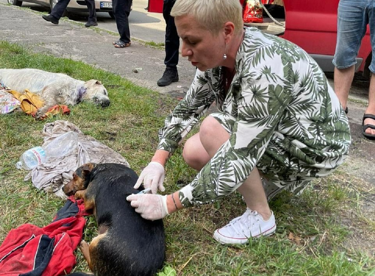 Ветеринарні лікарі комунального підприємства «Київська міська лікарня ветеринарної медицини» надали їм першу допомогу. Собаки під наглядом фахівців.