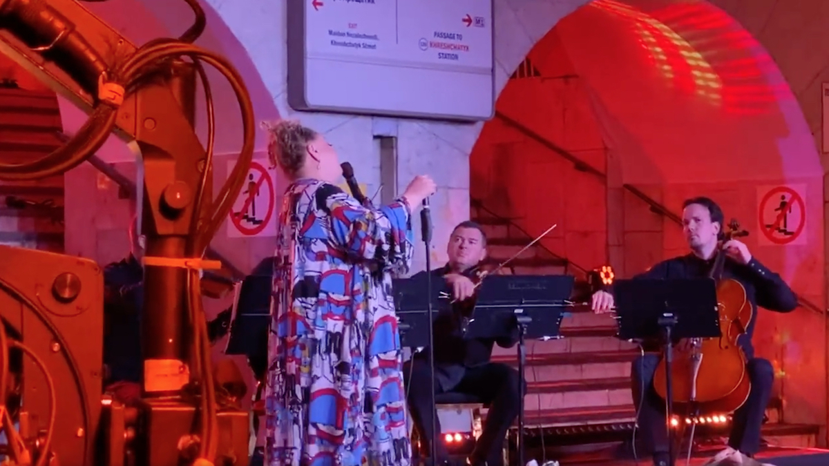 На інших роликах, які публікують у соцмережах, чути, як Ніно Катамадзе заспівала «Чорнобривці». Під час її концерту в метро продовжували курсувати потяги.