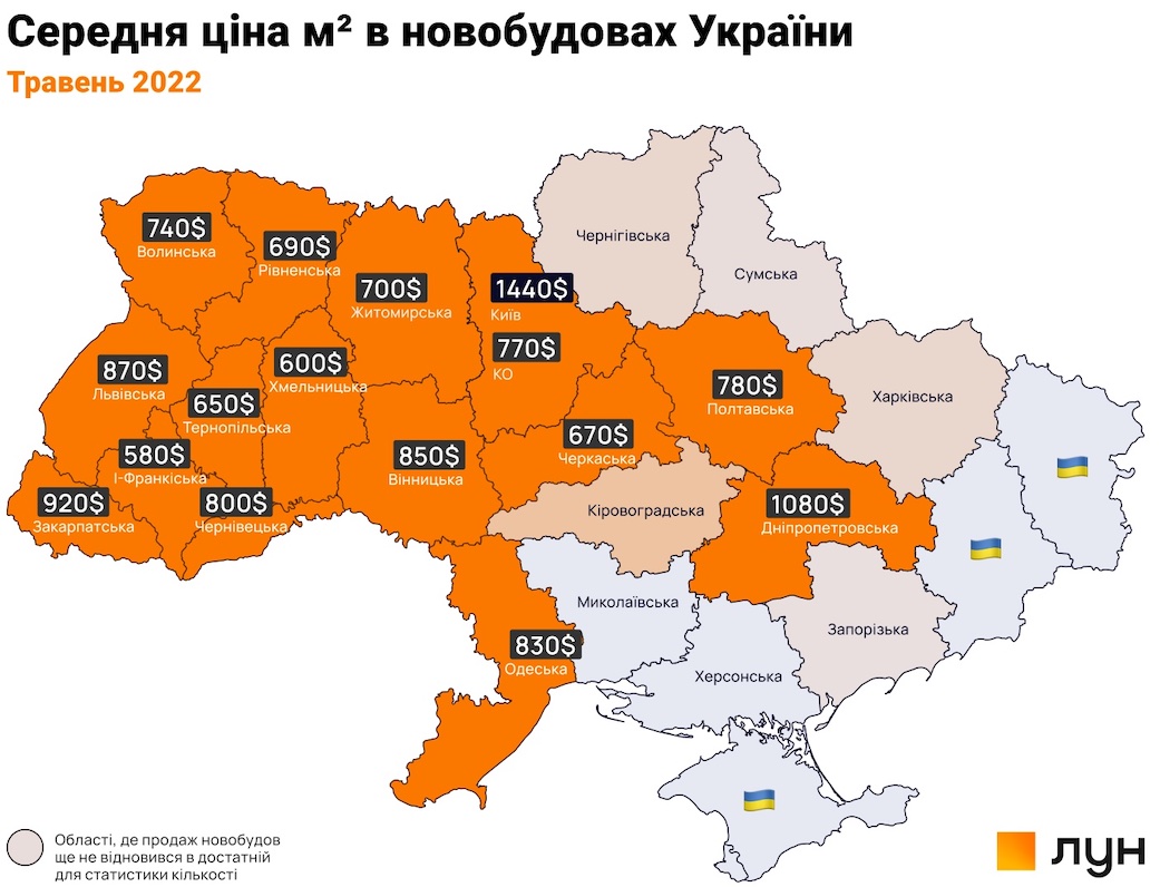 Ціни у доларах на новобудови Одеси та Києва повернулись до довоєнного рівня, а у Львові зросли в усіх класах будівництв, повідомляють аналітики ЛУН.