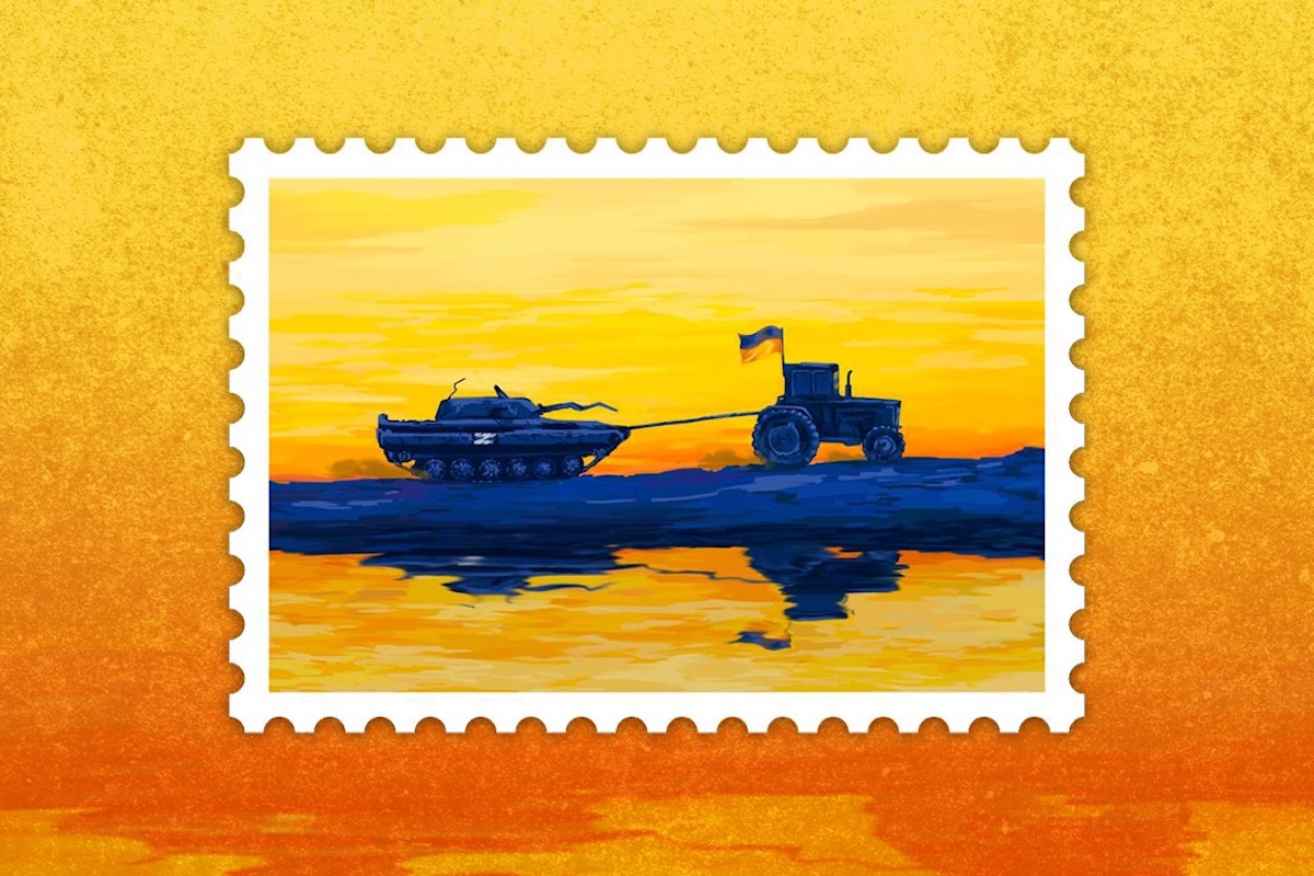 Понад 40% обрали ескіз із трактором, який тягне російський танк. Укрпошта планує випустити нову марку з цією ілюстрацією за місяць.