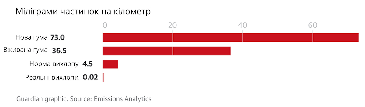 «Вихлопні труби зараз настільки чисті, що якби ідея регулювати їх з’явилася просто зараз, ніхто навіть не визнав би це важливим. Натомість покришки стрімко обганяють вихлопні труби як головне джерело викидів від автівок», — запевняє представник Emissions Analytics Нік Молден.