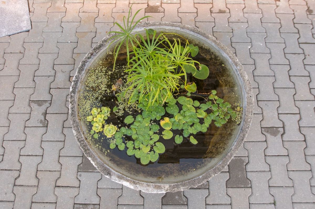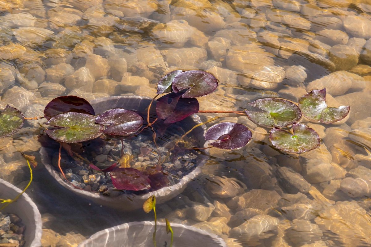 У горщики з водою висадили ряску, осоку, водяний горіх, плавун щитолистий, чотирилистку водяну, водяний різак алоевидний, стрілицю звичайну, вольфію безкореневу, водяний салат, вушастий водяник тощо.