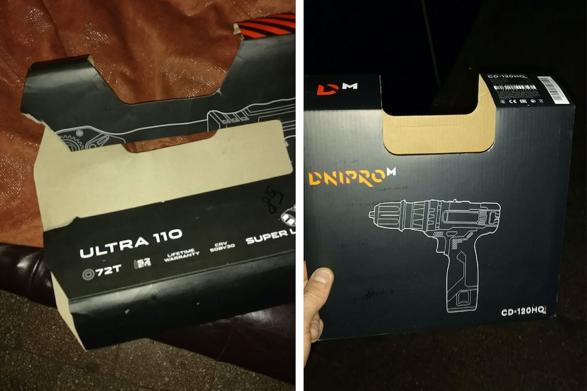 Крім спальників і бутильованої води з бару, за його словами, правоохоронці забрали новий набір ключів Dnipro-M вартістю приблизно 3 000 гривень та шуруповерт Dnipro-M вартістю приблизно 1 700 гривень.