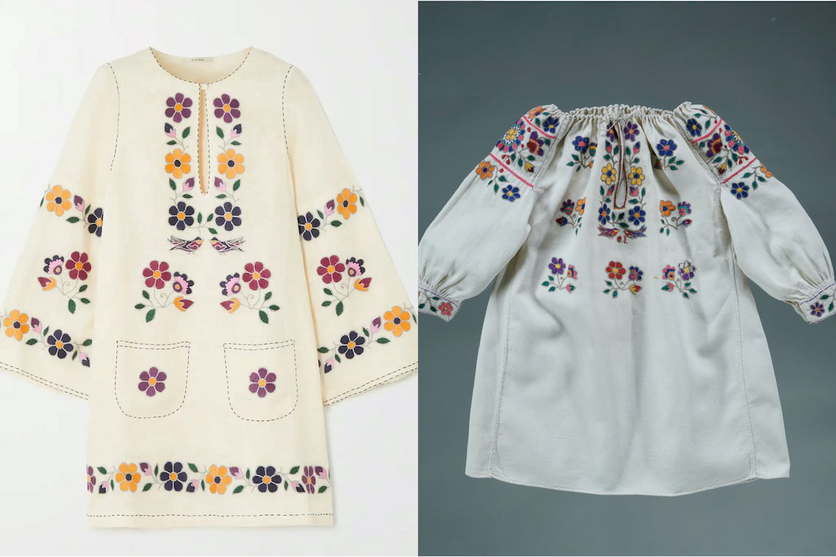 Йдеться не про авторські права в юридичному сенсі — позаяк це виріб безіменної майстрині початку ХХ століття, — а саме про культурне привласнення як експлуатацію культури вразливішої соціальної групи.