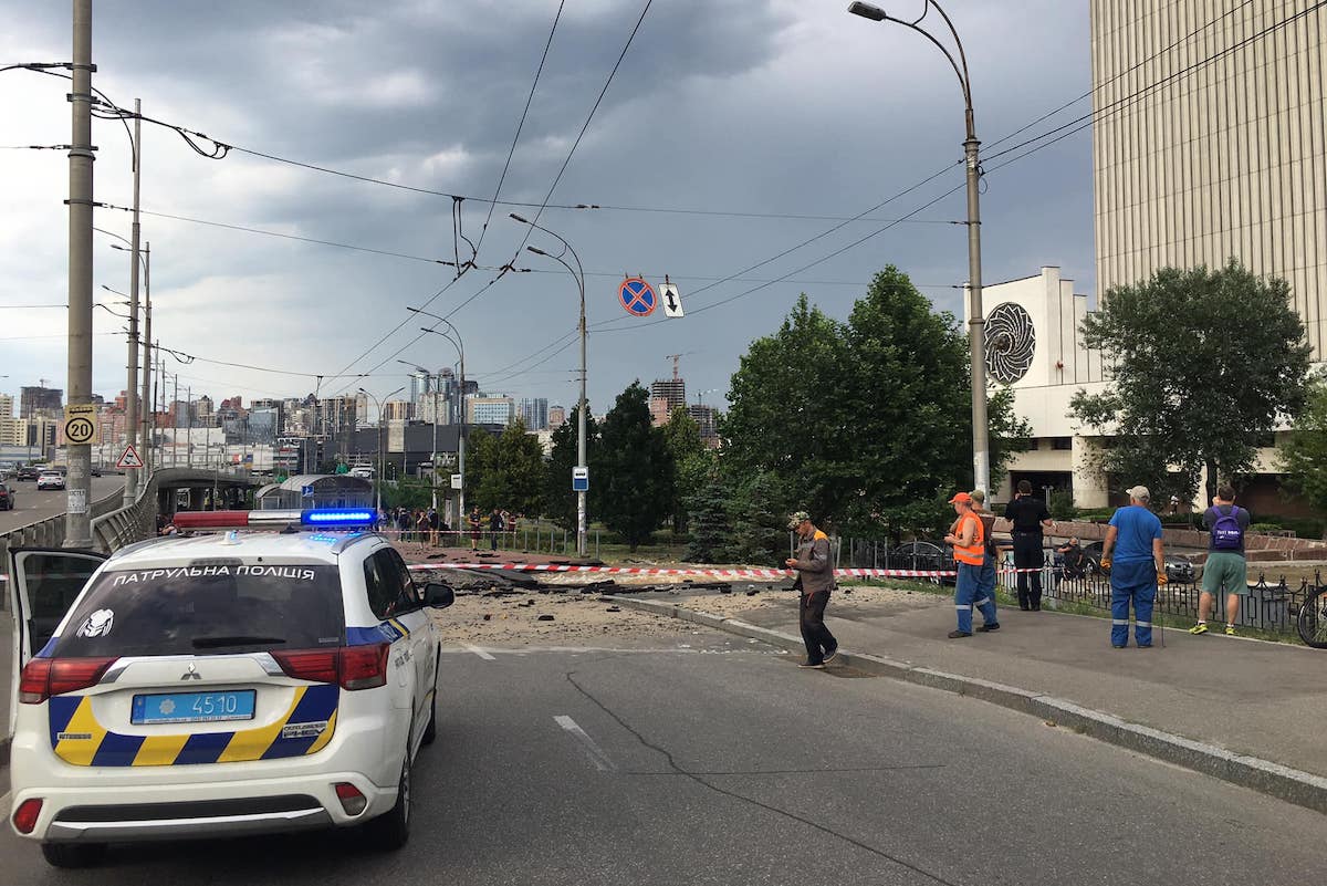 У травні минулого року приблизно на цьому місці, навпроти бібліотеки Вернадського, ставався прорив труби. Тоді гейзер бив на висоту кількох десятків метрів, каміння побило припарковані біля бібліотеки автомобілі.