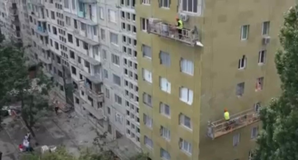 Мешканці будинку звернули увагу, що будинок почали утеплювати раніше, ніж відбудовувати зруйновані квартири.