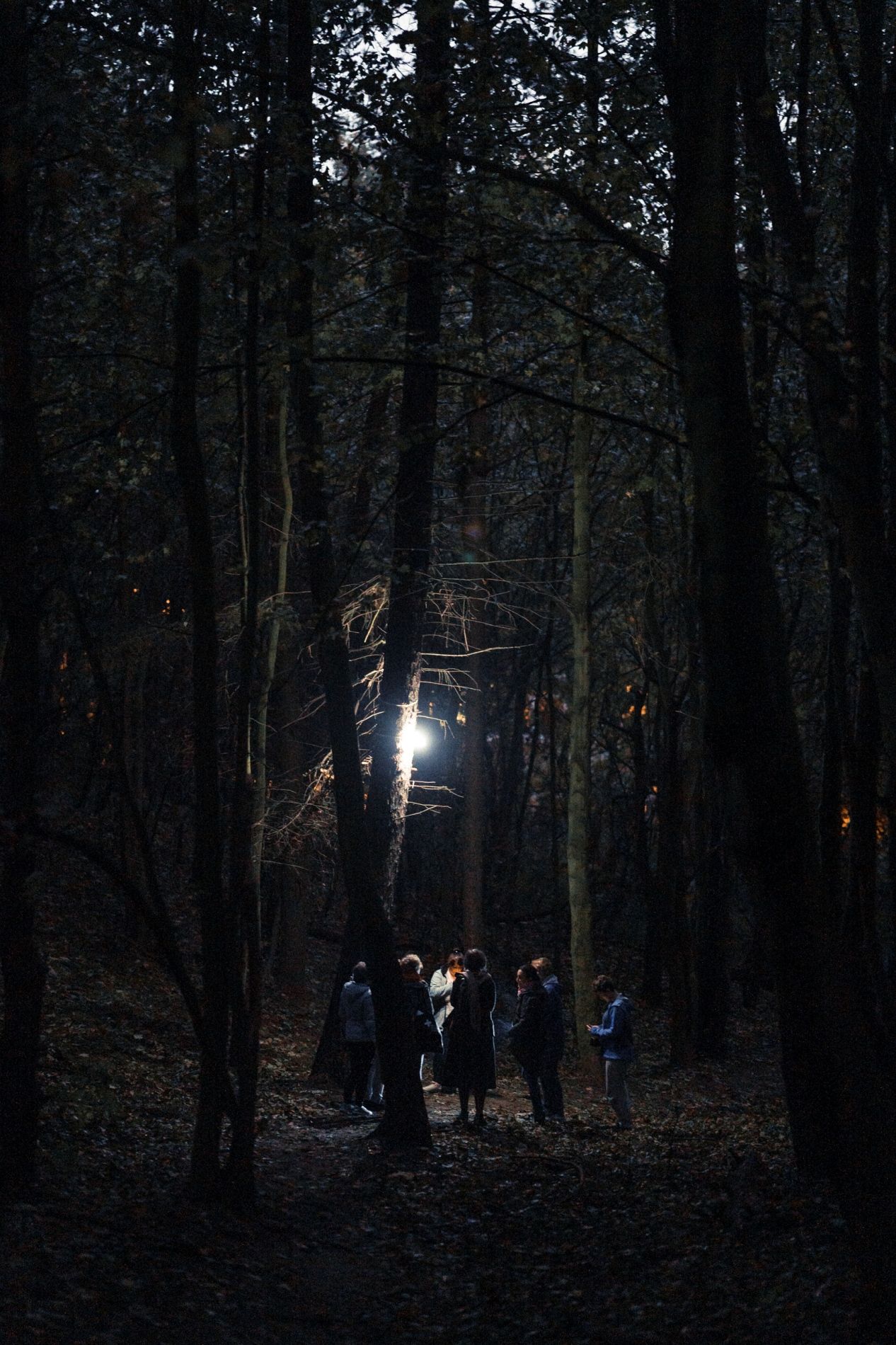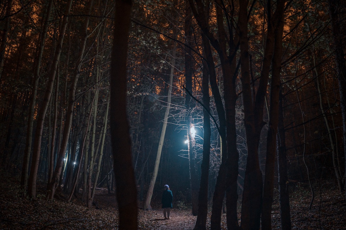 Ліхтарі освітлюють стежину, що простягається лісопарком у районі Оксивє.