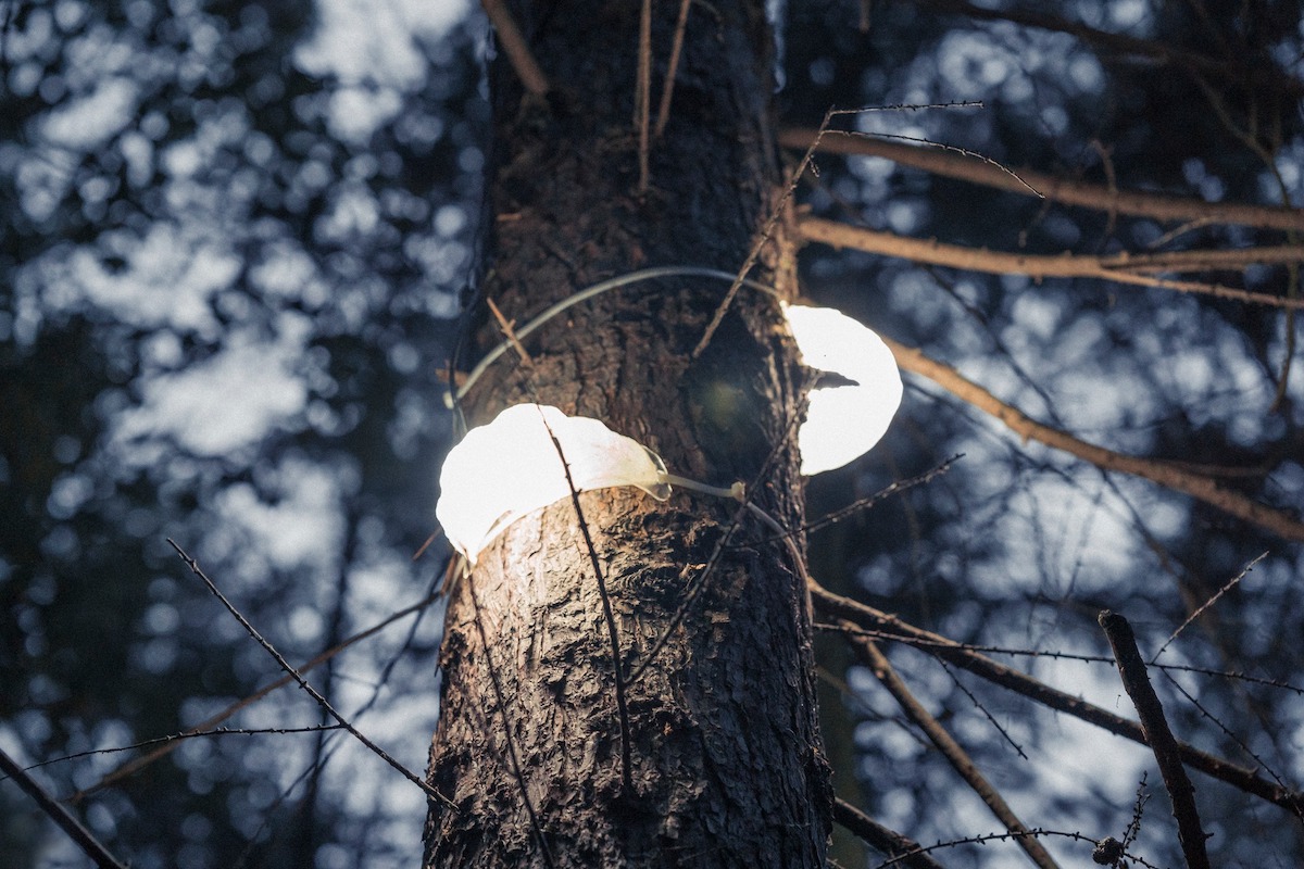 Ліхтарі формою нагадують трутовики. Власне, дизайнери створили абажур за зліпком деревного гриба. Й при цьому — позаяк деякі різновиди трутовиків перебувають під охороною — вони використали мертвий гриб поваленого дерева.
