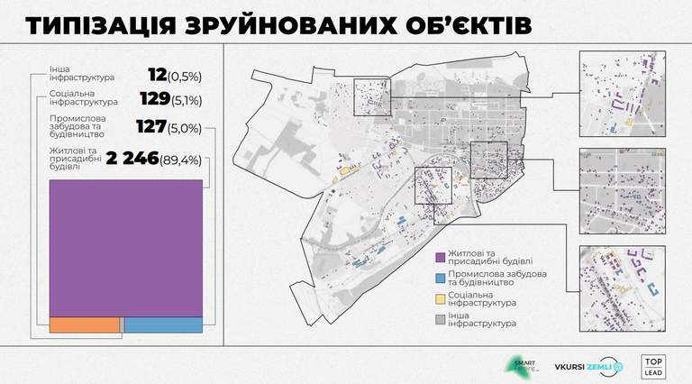 Оцінкою збитків займається проєкт RebuildUA за допомогою дронів. Нещодавно вони підрахували кількість зруйнованих об’єктів у Ірпені. Згідно з отриманими даними, внаслідок вторгнення російських військ було знищено 10 596 будинків.