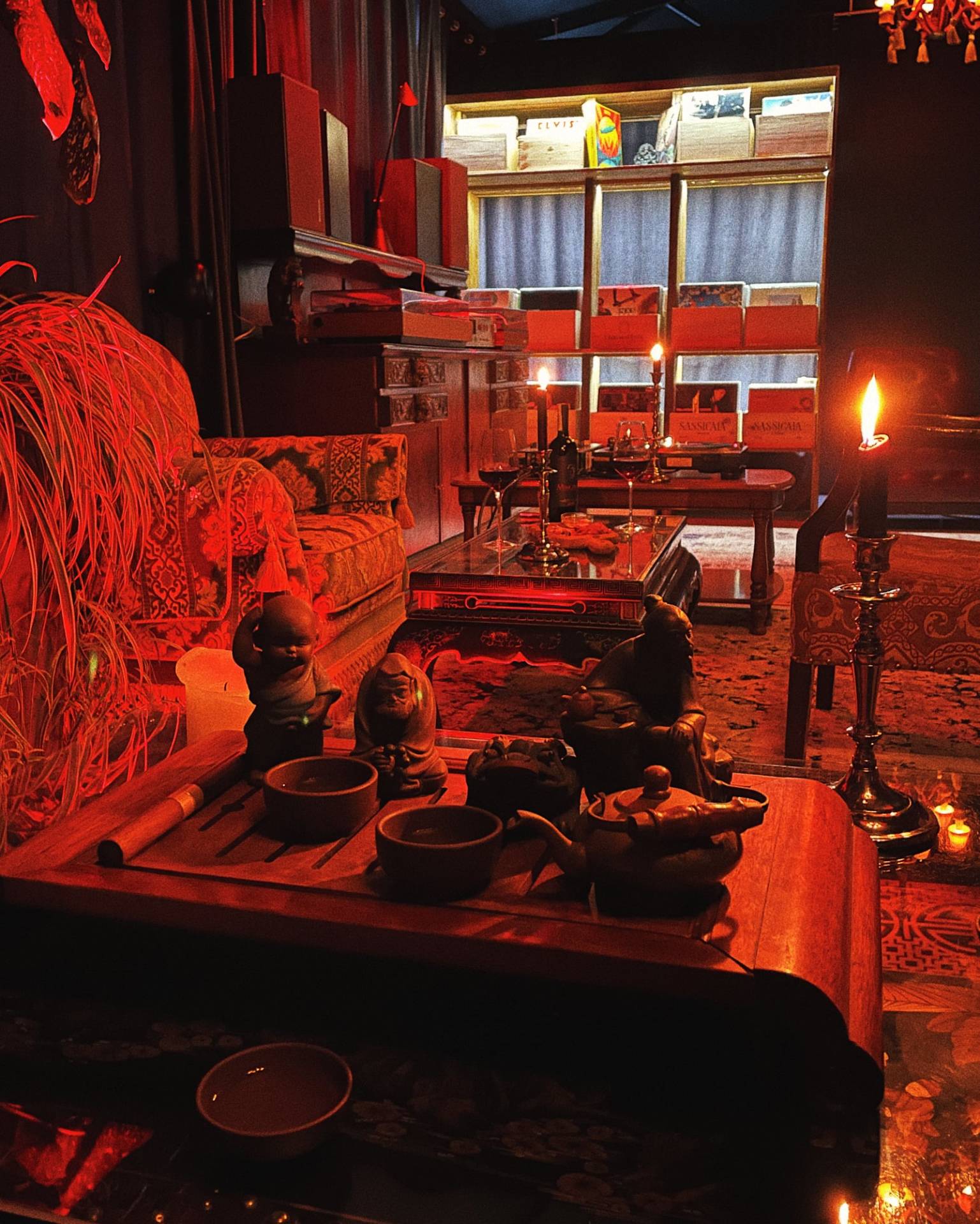 Інтер’єр оздобили антикварними та вінтажними меблями, а також зібраними по світу дрібничками, зокрема декором у стилі шинуазрі — натхненний китайською культурою дизайн був особливо популярним у Європі XVIII століття.