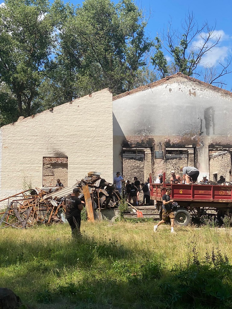 На Чернігівщині волонтери влаштували рейв-толоку в зруйнованій окупантами будівлі