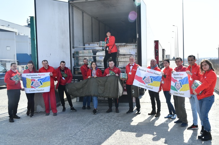 З першого дня війни Auchan Україна отримував підтримку від колег з Auchan Угорщини, Румунії та Португалії. Впродовж березня та квітня Auchan Румунія за власні кошти зібрали понад 30 палет товарів широкого вжитку, особистої гігієни, текстилю тощо. Португалія забезпечила соціальними пакетами 5 тисяч українських співробітників. Майже всі країни присутності Auchan допомагали українським переселенцям. Наприклад, колеги з Франції та Люксембургу передали одяг і товари першої необхідності у польський центр біженців, де найбільше українців.