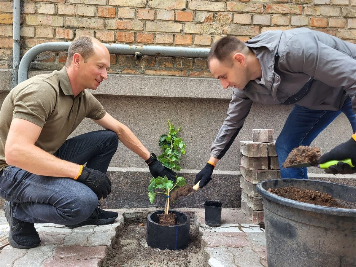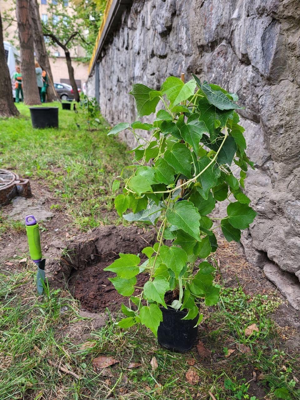 У внутрішньому дворику мерії по вулиці Хрещатик, 36 висадили понад 20 паростків винограду Вічі. Про це повідомив начальник Управління екології та природних ресурсів КМДА Олександр Возний.