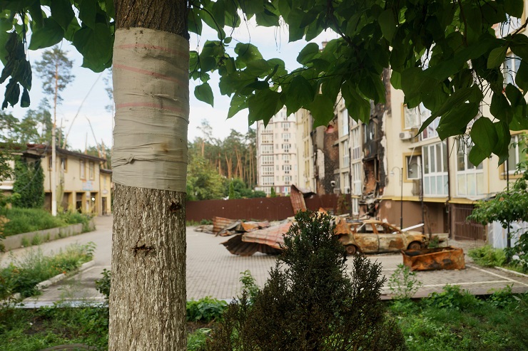 Ще в квітні волонтери висадили м’яту й бузок у дворах напівзруйнованих будинків, а місцеві — посадили овочі на своїх городах. Учасниця ініціативи, художниця Оля Михайлюк розповідає, що взаємодія з рослинами дає людям можливість відволіктися від страшних березневих спогадів, оцінити ділянки ґрунту щодо вологи й сонячного проміння, аби кущі й квіти прижилися, а отже — подумати про мирне майбутнє свого міста.