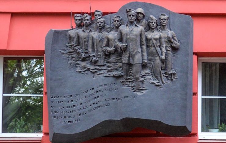Другий — радянська меморіальна дошка студентам і викладачам університету, які загинули «за радянську батьківщину» під час «Великої вітчизняної війни», розміщена на фасаді червоного корпусу.