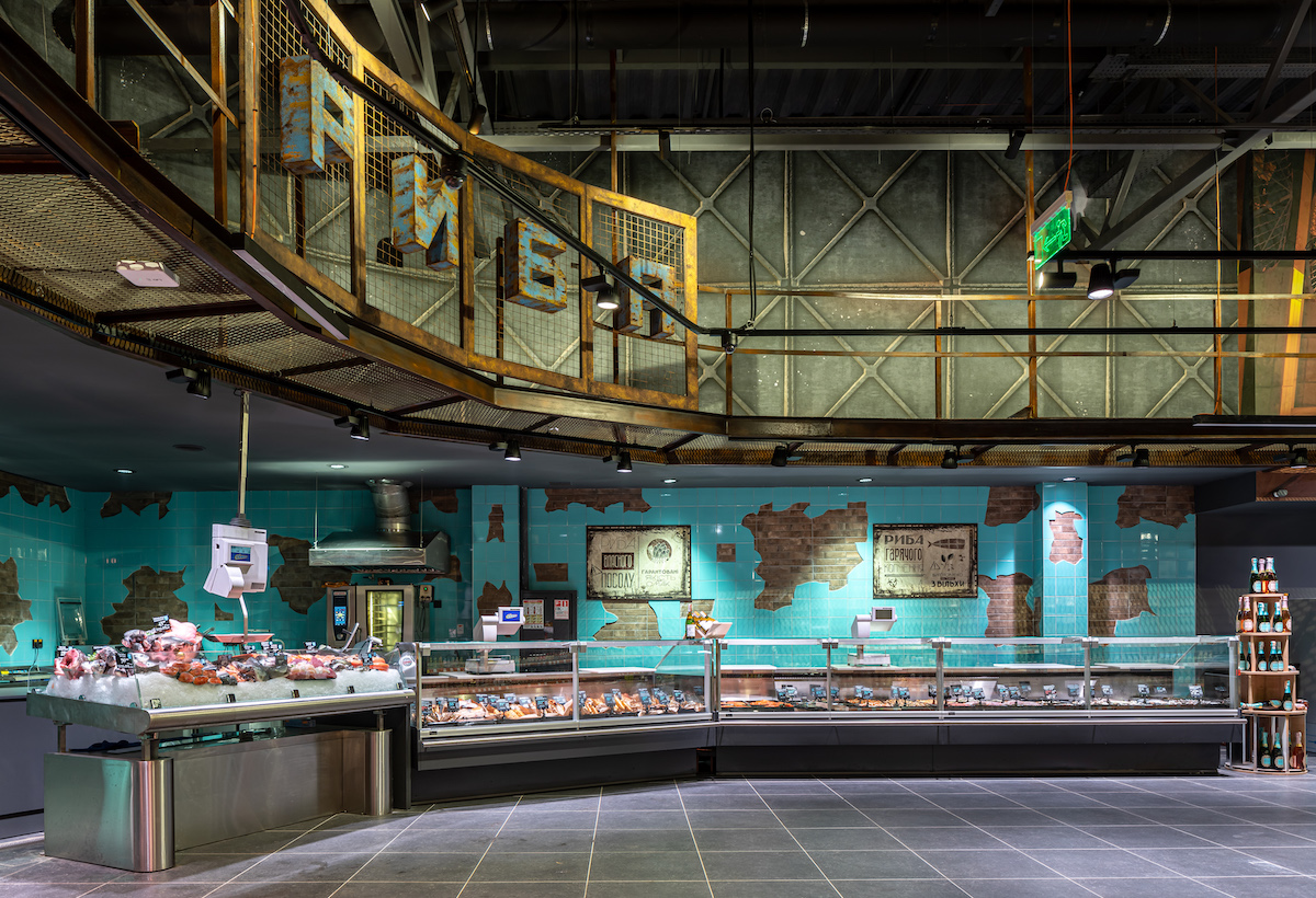 Рибний відділ натякає на Лабораторію Х18. Тут є риба власного копчення і соління, акваріум з устрицями та імпортна й українська свіжа риба з чистих водоймищ.