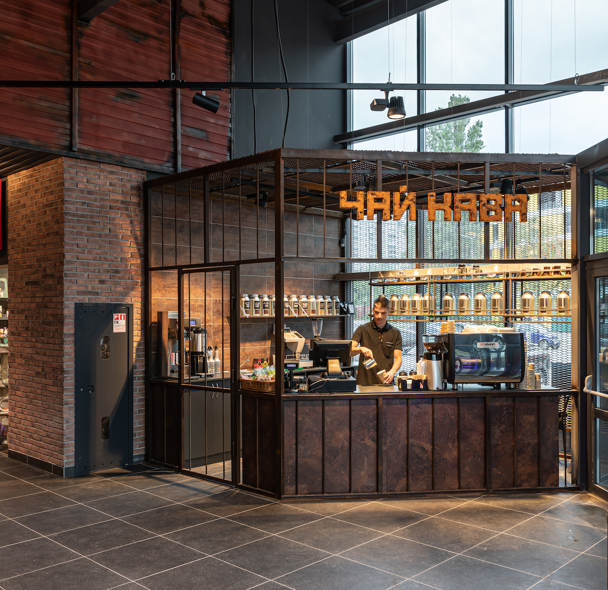Усі вказівники для навігації магазином відсилають до різних локацій: наприклад, у м’ясному відділі вивіскою слугують паливні баки з імітацією вогню. Кавовий бутик при вході оформлено як бункер Сидоровича. Каву обсмажують на власному заводі у Ворзелі.