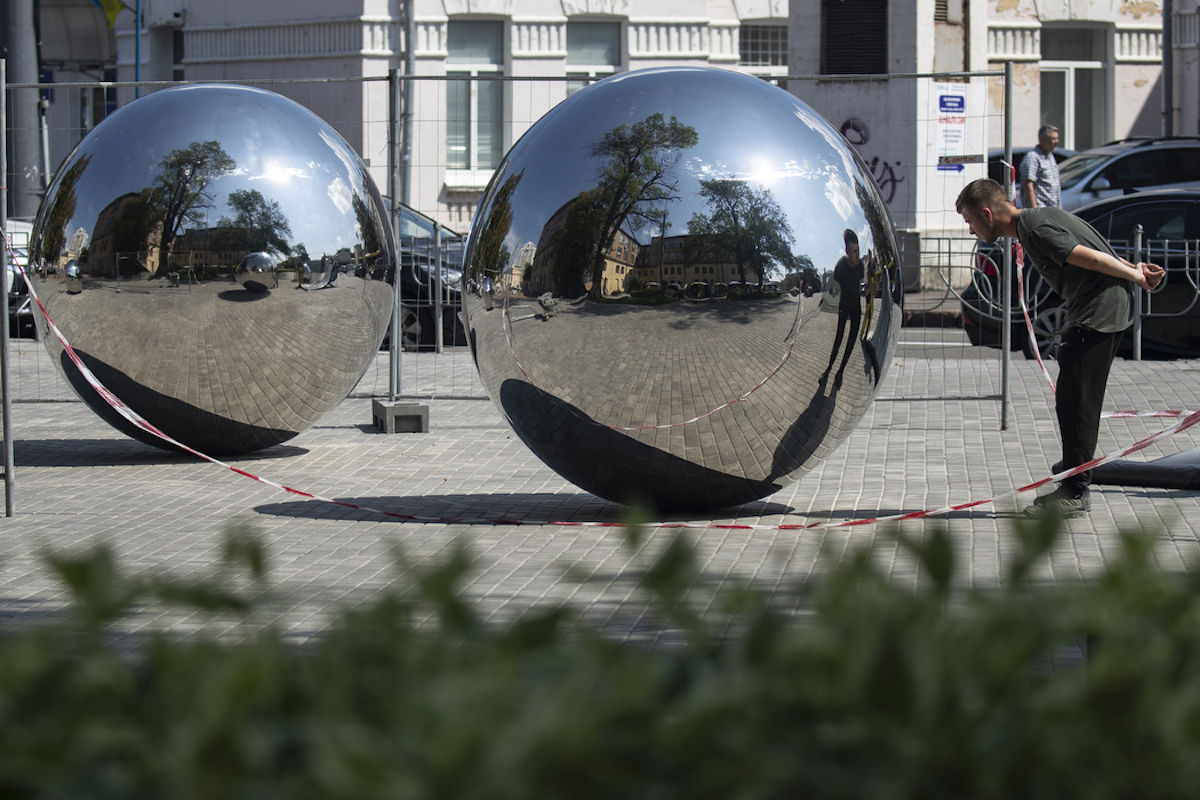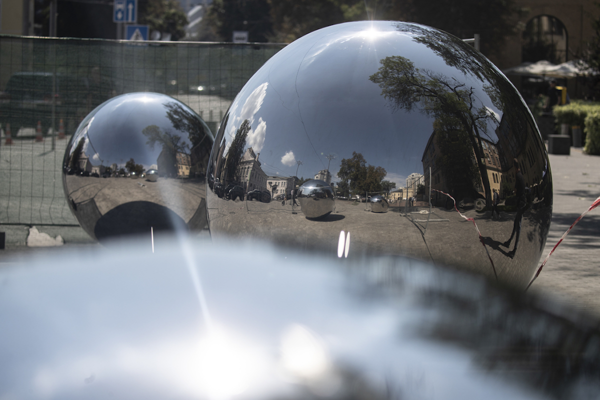 На Арсенальній встановлюють дзеркальні кулі (фото). Це мистецький об’єкт