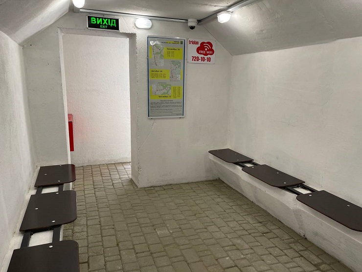 У приміщенні є ящик зі 100 кілограмами піску для гасіння пожеж, гучномовець, екран для камер відеоспостереження, вай-фай та прямий зв’язок з диспетчером. Також у сховищі розміщено карту руху транспорту та розклад. Загалом укриття розраховане на 30 людей та має 12 сидячих місць.