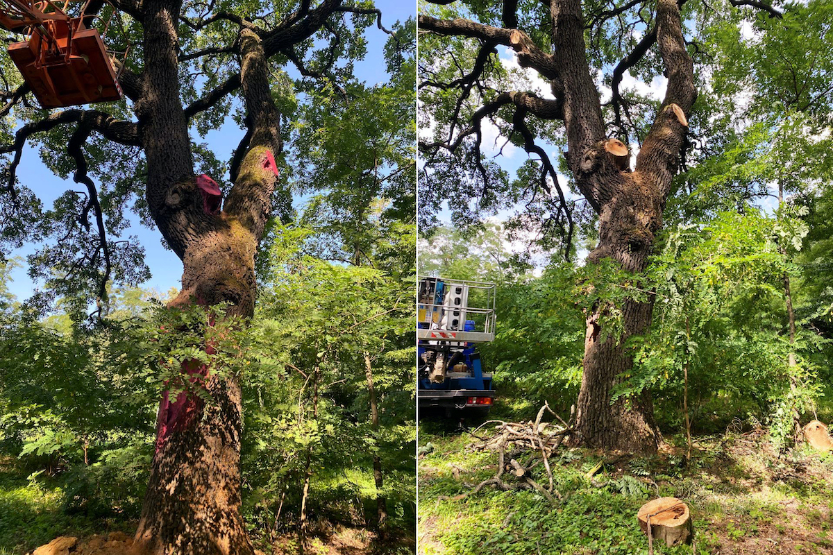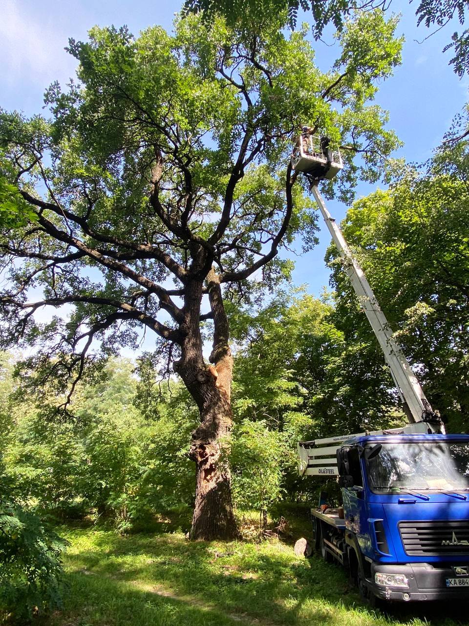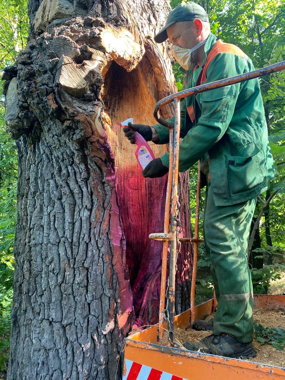 Після цього обрізали сухі та пошкоджені гілки; видалили гриби-трутовики, очистили дупла від гнилої і хворої деревини, встановили дренаж.