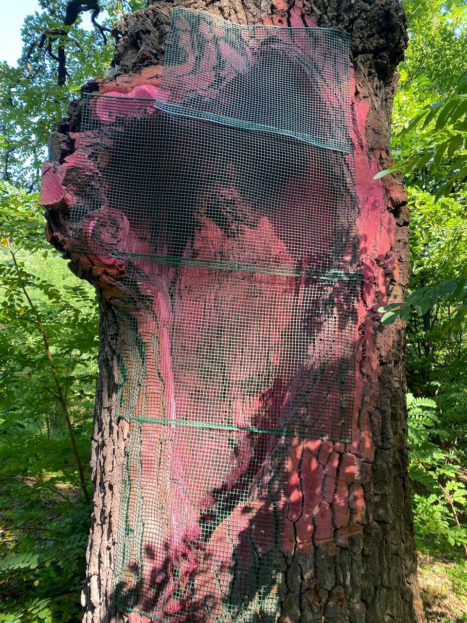 Рани обробили фунгіцидом, який пригнічує розвиток хвороботворних бактерій. Захисні сітки захищатимуть дупла від потрапляння сміття.