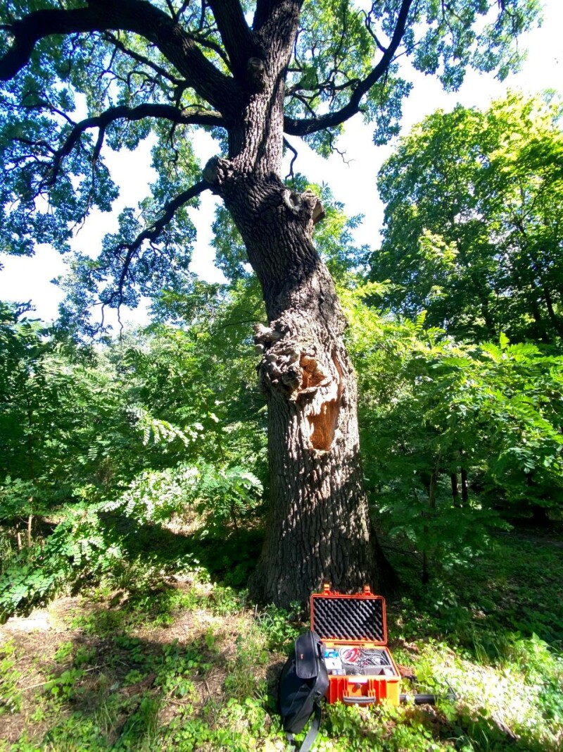 Перед цим дерева обстрежували за допомогою імпульсного томографа — арботома, який підприємство придбало рік тому. Арботом показав, що у трьох із п’яти дерев є стовбурова гниль.