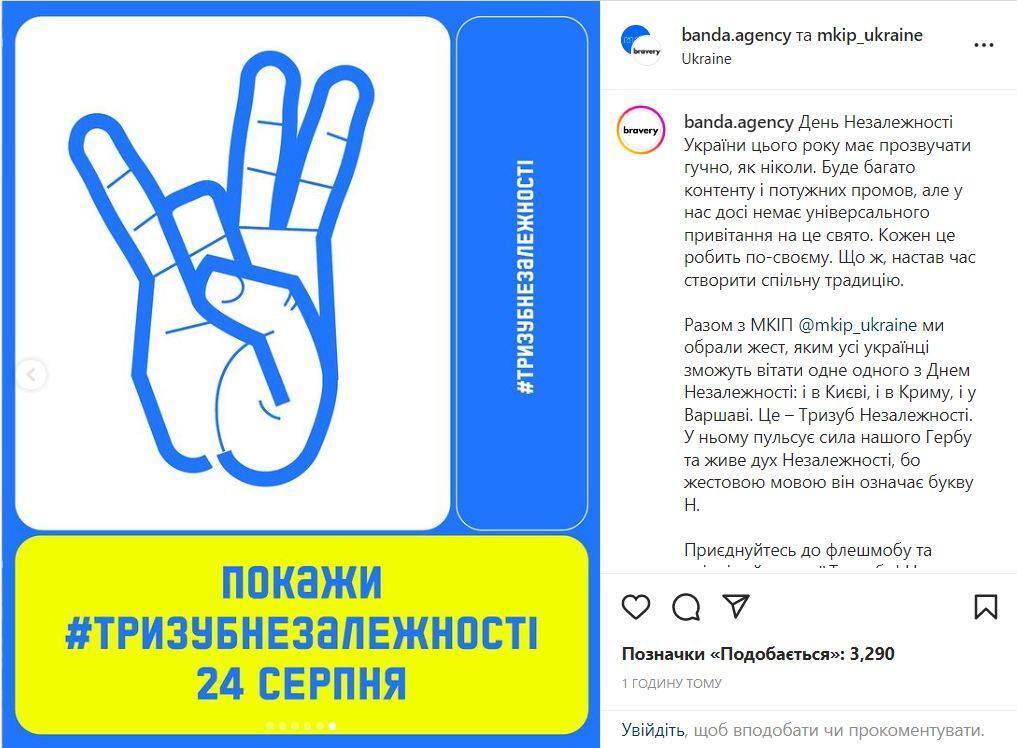 Схоже повідомлення з’явилося і на сторінці Banda Agency: «Ми знаємо і шануємо традиційний жест Тризуба з пальців, який використовував В’ячеслав Чорновіл. Проте, на жаль, зараз його небезпечно підіймати у тимчасово окупованих українських областях. А ще він досить сильно асоціюється з однією з політичних партій».