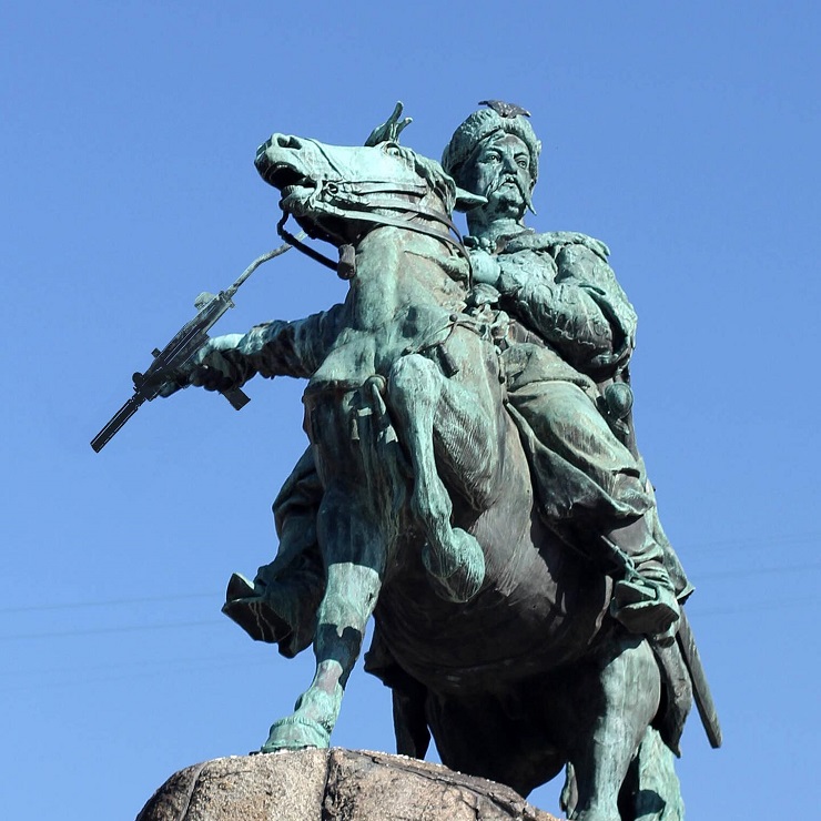 SMM-агенція Sasquatch Digital з нагоди Дня Незалежності «озброїла» українські пам’ятники. Світлини опубліковані на сторінці в Facebook.