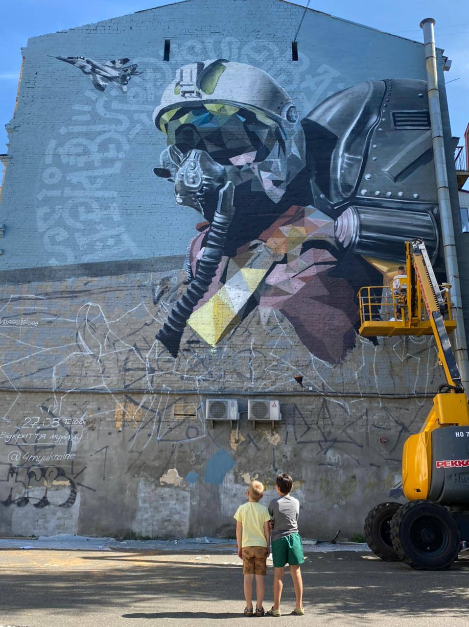 Мурал — ініціатива благодійного фонду «Для моєї України», який допомагає дітям загиблих льотчиків. Створювати його почали 19 серпня.