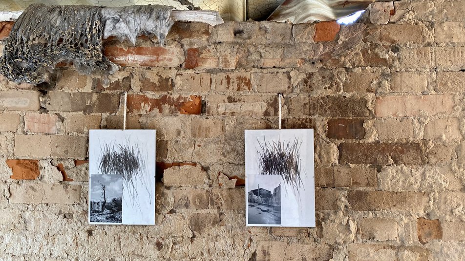 Квартира, в якій проходить виставка, повністю зруйнована, відчувається запах горілого. Водночас, сонце пробивається крізь залишки даху, а крізь діри в стінах залітають метелики.