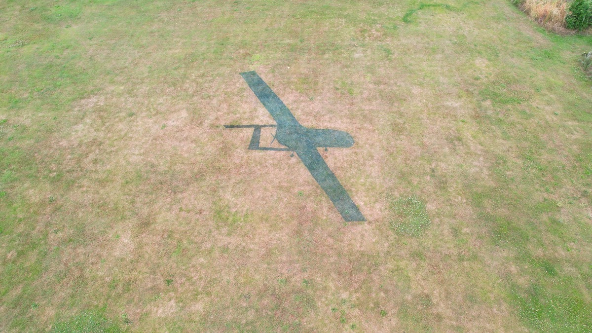 Неподалік, на житньому полі — тіні російського винищувача Су-27 та ворожого безпілотника. Це все складові одного проєкту «Мирне небо».