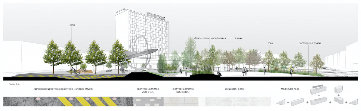 Концепцію оновлення публічного простору розробила київська студія ландшафтної архітектури Максима Коцюби.