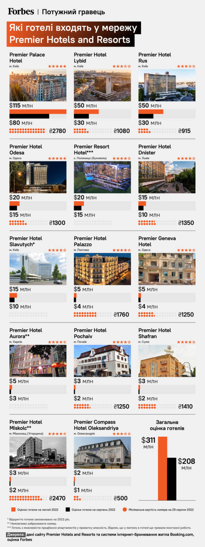 Нещодавно в Україні арештували майно львівського Premier Hotel Dnister та київського Premier Hotel Lybid, серед власників яких є російські бізнесмени та політики. Досі в Україні працюють понад десять готелів мережі, пише Forbes.