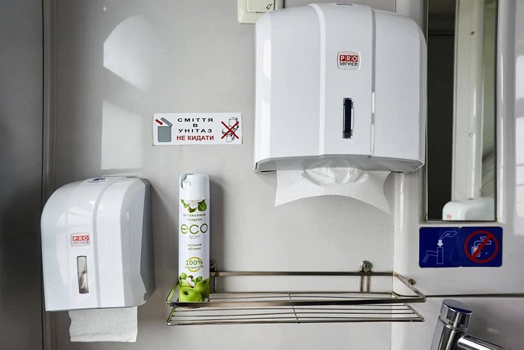 У рамках пілоту у перших двох поїздах з’являться мийні засоби «нового покоління» для внутрішнього миття вагонів, піна для миття рук в зручних автоматичних дозаторах, зручні тримачі для туалетного паперу, одноразові накладки на унітази та дозатори паперових рушників.