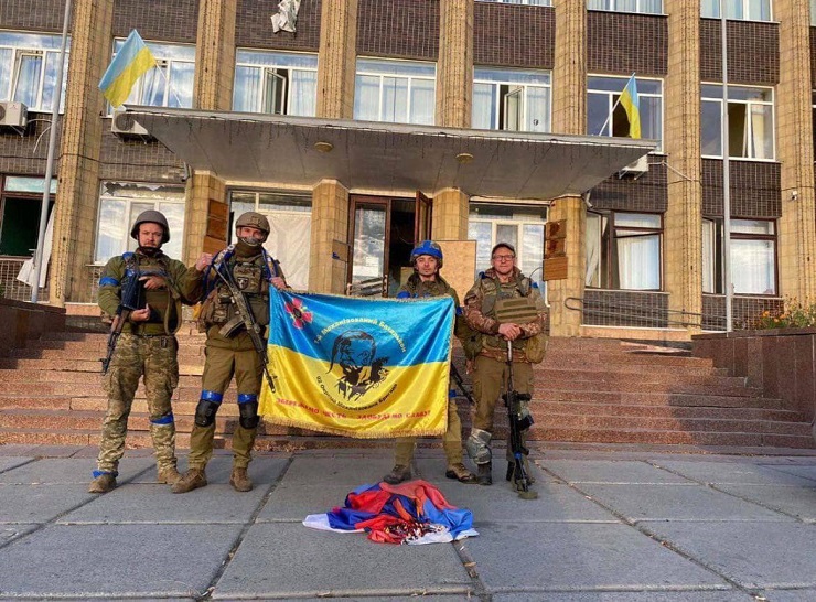 Збройні Сили України продовжують наступ на Харківському напрямку. Десятого вересня українські військові встановили українські прапори на будівлі місцевої міськради та опублікували фото із зірваним російським триколором.