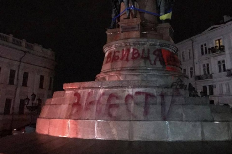 18 вересня близько двох десятків молодих людей провели акцію біля пам’ятника Катерині II. Вони вимагали демонтувати цей символ «русского мира». Вночі 17 вересня на постаменті пам’ятника з’явився новий напис червоною фарбою – «Вбивця, знести».