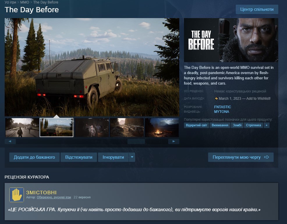 Користувачі Steam можуть підписуватися на «кураторів» — групи, які виробляють рекомендації щодо тих чи інших ігор. Якщо підписатися на куратора «Обережно, русняві ігри», він попереждатиме про те, що реліз створено російськими розробниками.