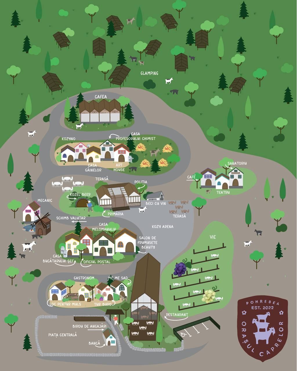 «Козине місто» проєктувало бюро молдовського архітектора Сергія Мирзи. Локацію оформлено як іграшкове містечко — тут є мерія, поліцейський відділок, пошта, казино, банк, будинок творчості, гастроном, а також власні герб і валюта. Є ресторан з великою терасою.