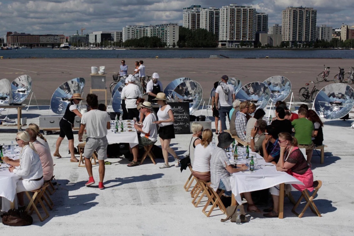 «Приготування їжі на сонці істотно відрізняється від традиційної кулінарії. Процес відбувається на вулиці, — слід бути в сонячнях окулярах, — дуже залежить від погоди та вимагає гнучкості не лише від кухаря, але й від відвідувачів. Крім того, концентрація жару за допомогою параболи обробляє їжу інакше, ніж традиційні джерела тепла, роблячи текстуру й смак кращими», — зазначає Марті Гіше, каталонський дизайнер, який допоміг створити проєкт у Лісабоні.