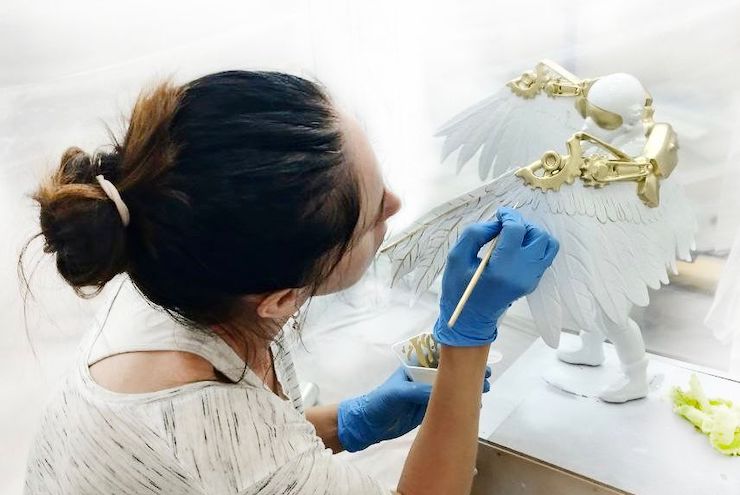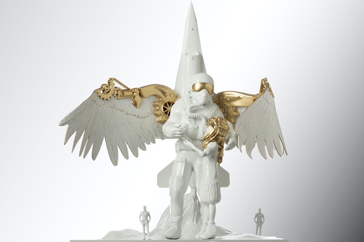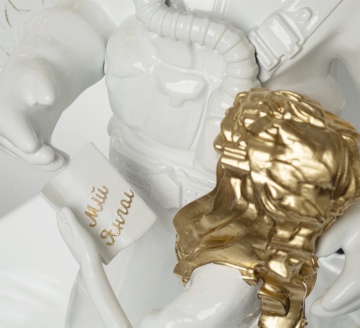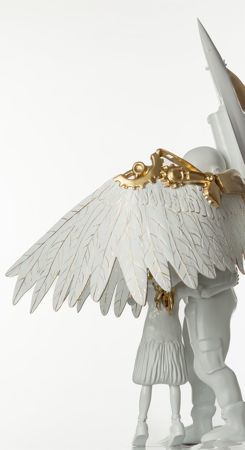 Концепт — білий з позолотою архангел з механічними крилами та літаком на спині.